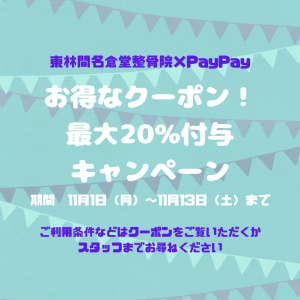 皆様への日頃の感謝を込めまして【東林間名倉堂整骨院×PayPayコラボキャンペーン】を実施いたします!