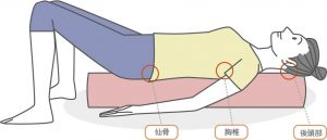 ストレッチポールに仰向けで乗ると頭蓋骨、胸椎、仙骨が押し出される形になり