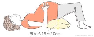 骨盤の下にクッションやタオルを敷いた姿勢を骨盤高位と言います
