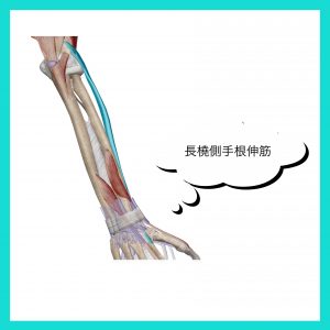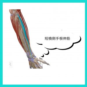グリップを握ったり、手首を動かしたりする筋肉である長橈側手根伸筋(ちょうとうそくしゅこんしんきん)、短橈側手根伸筋(たんとうそくしゅこんしんきん)、総指伸筋(そうししんきん)の関係性が高いと言われてます。特に短橈側手根伸筋の腱の痛みが発症する場合が多く見られるそうです。