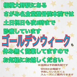 さがみ名倉堂整骨院本院はゴールデンウィーク中も