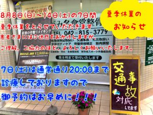 当院は8/8(日)より8/14(土)まで夏季休診を取らせていただきます。