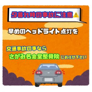 交通事故の発生は薄暗くなる夕暮れ時の事故が多いと言われています。