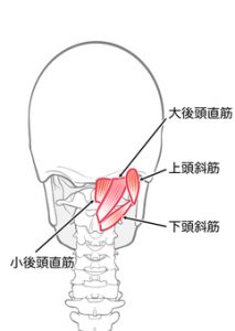 そうなると出てくるのが、頭の付け根にある「後頭下筋群」の血流不足に伴って起こる眼精疲労や首こりです