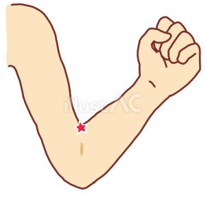 ❶「 尺沢 」:肘を曲げた時に真ん中に浮き出る筋肉の外側