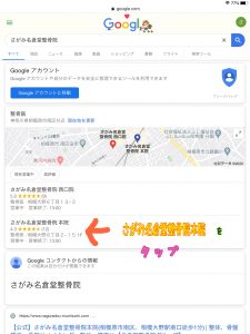 ●④開くとさがみ名倉堂整骨院本院のGoogleページが開きますので、