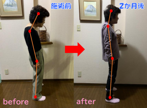 猫背が進行し、病院で「首下がり症候群」と診断された患者さまの症例です。