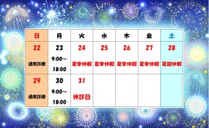 8月29日 日曜日 より通常診療とさせて頂きます。