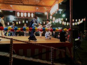 やぐらの上では太鼓や盆踊りなどもあり、今年も名倉堂に来院されていた患者さんが踊っていらっしゃいます。