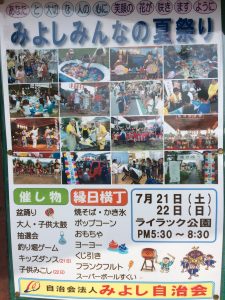7月21、22日と相模台名倉堂の近所のライラック公園で三好自治会のお祭りがあり、今年も行って参りました。