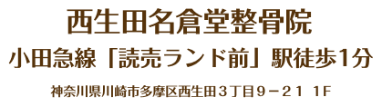 西生田名倉堂整骨院は移転のため令和6年3月31日にて閉院しました。